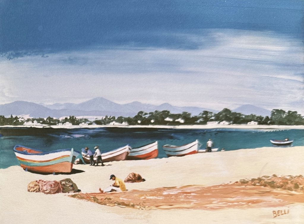 Hammamet, la Plage aux Pêcheurs Huile sur toile 1999